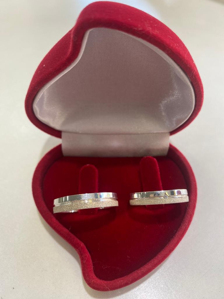 Par de aliança de prata masculina 4mm metade fosca risco central