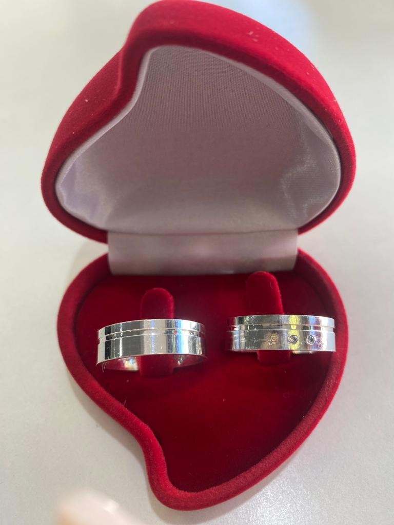 Par de aliança de prata reta anatômica escovada e friso 6mm