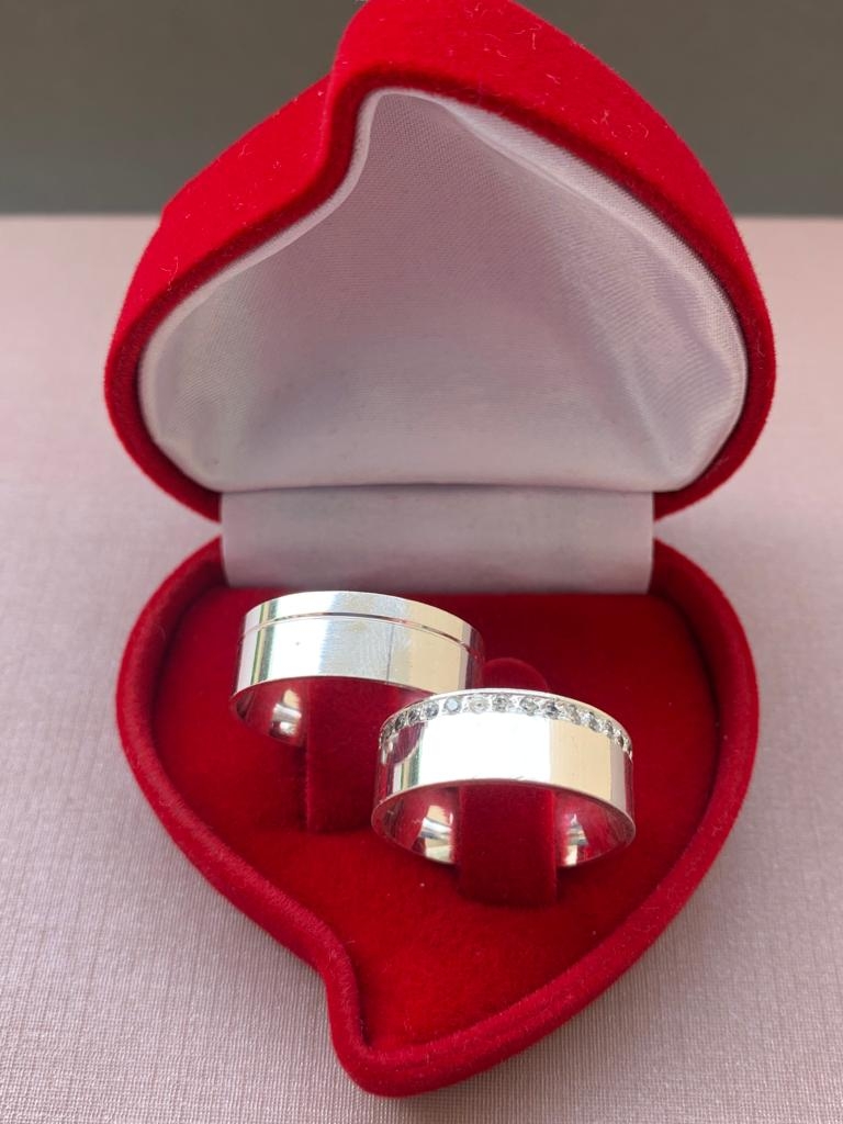 Par de aliança de prata reta anatômica lisa com friso 7mm