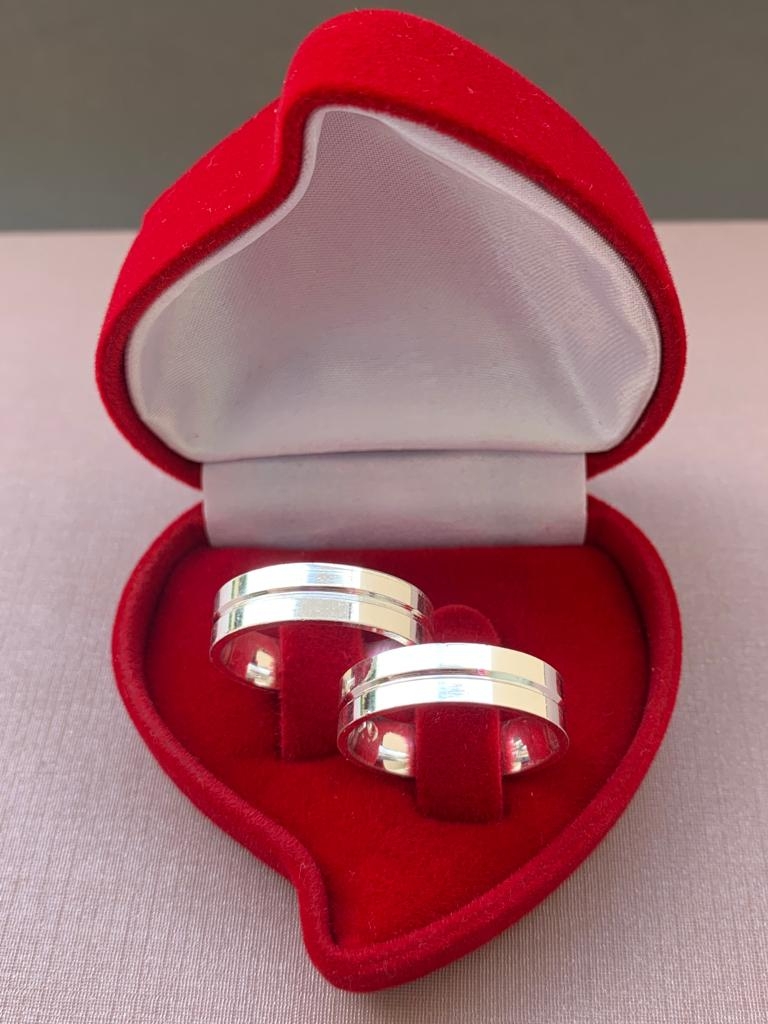 Par de aliança de prata reta anatômica lisa com friso central 6mm