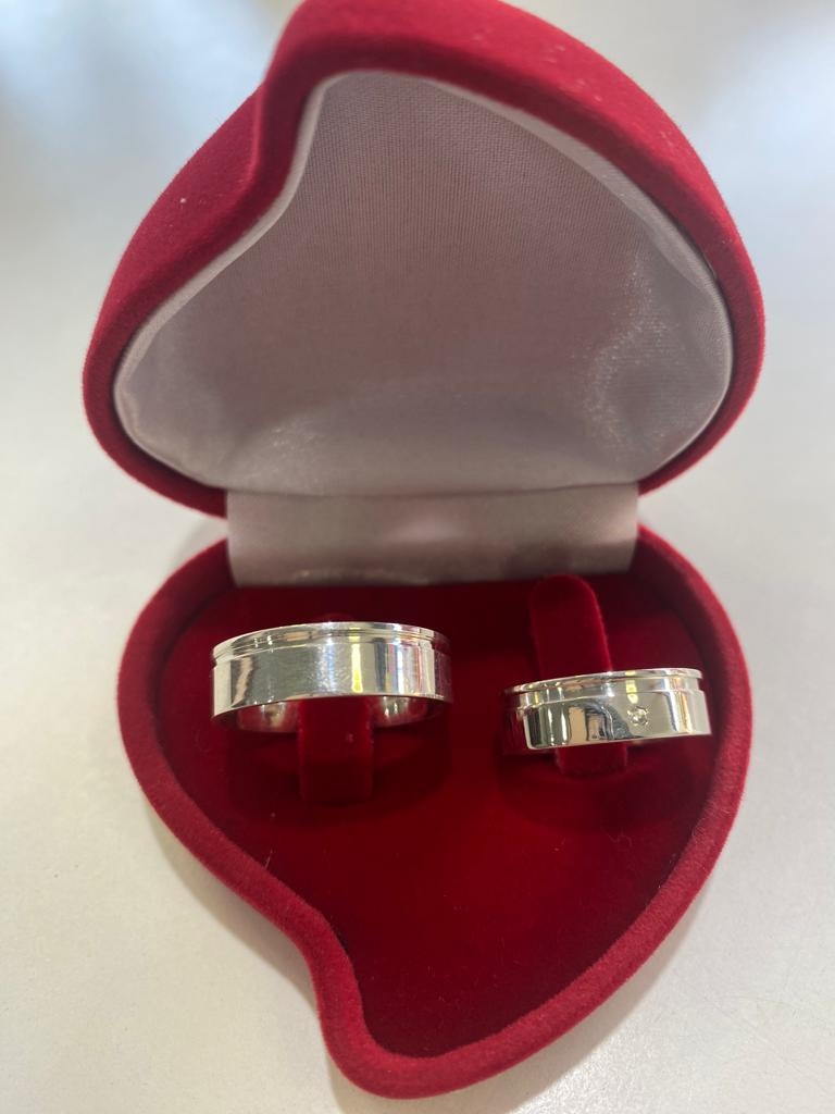 Par de aliança de prata reta anatômica lisa e friso 6mm